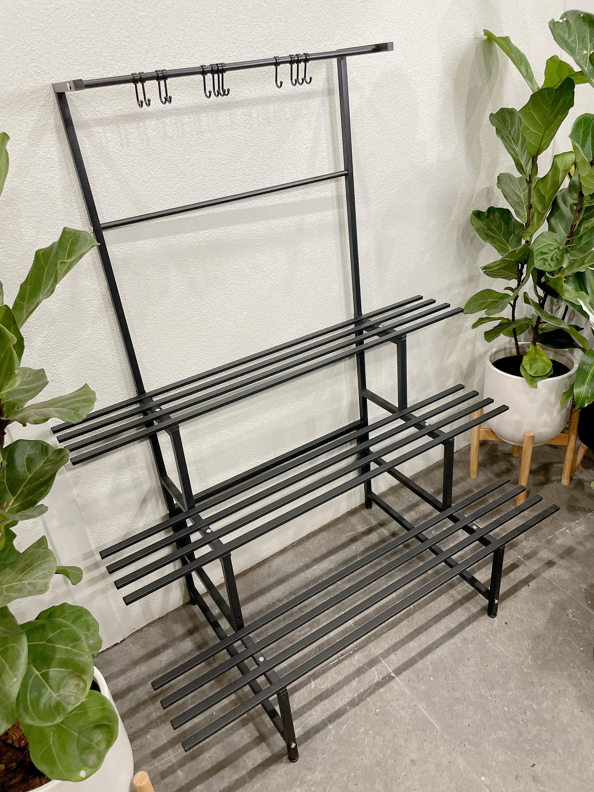 1.2m Wx1.5m tall black metal lightweight plant stand 3 tier hanging hooks pot holds outdoor patio