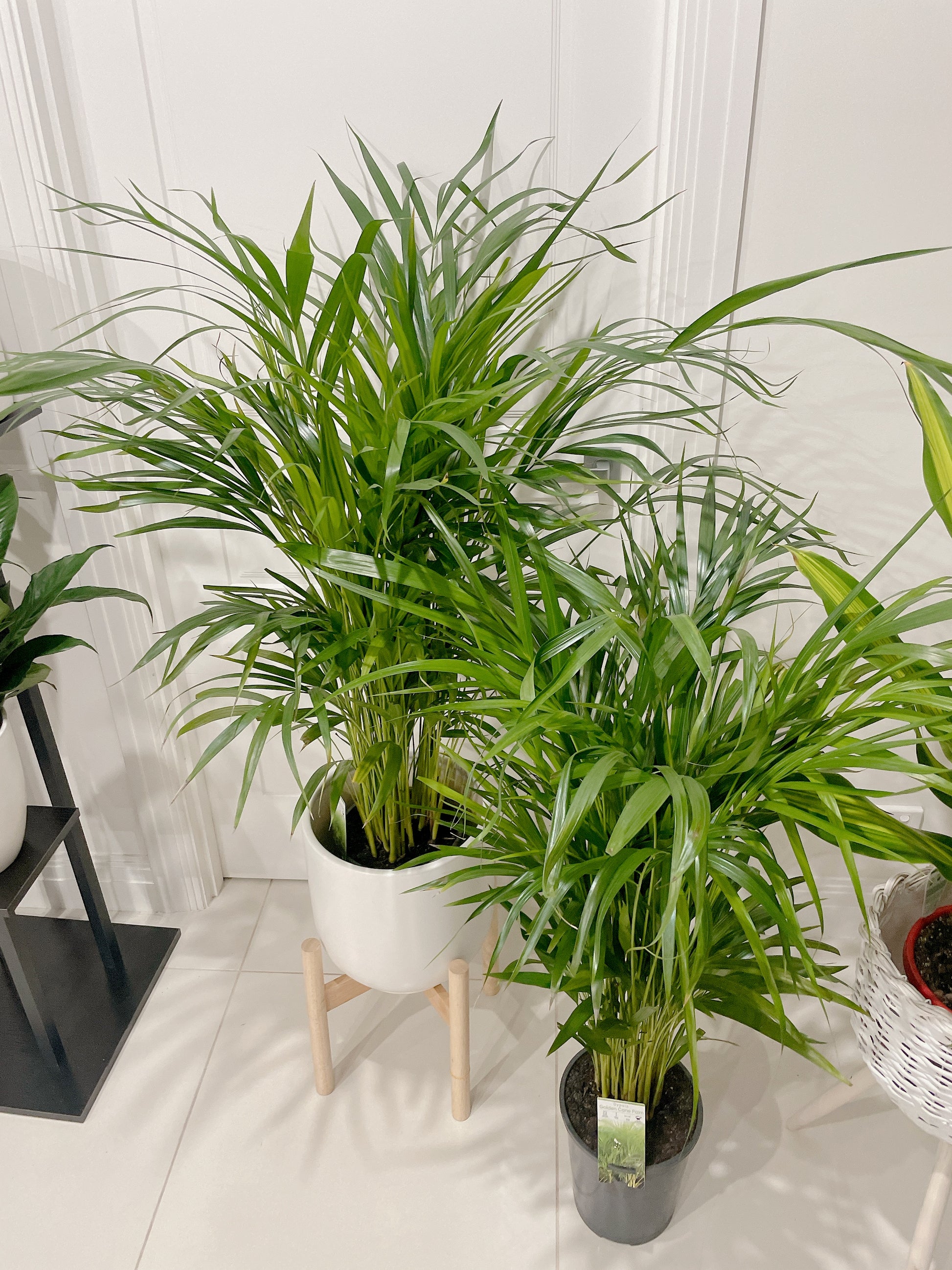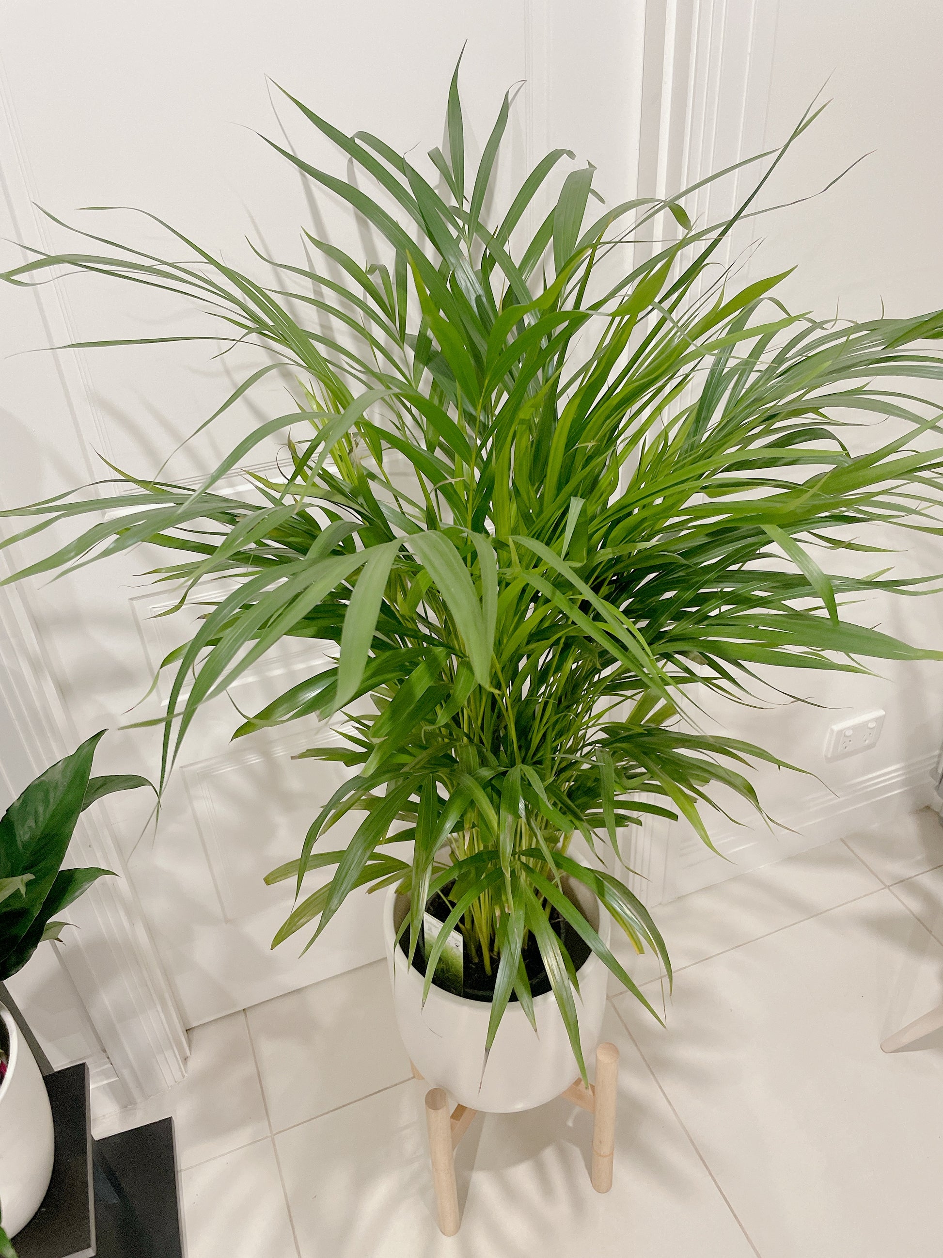 1.4m tall huge golden cane palm with 30cm white ceramic pot wooden tripod legs