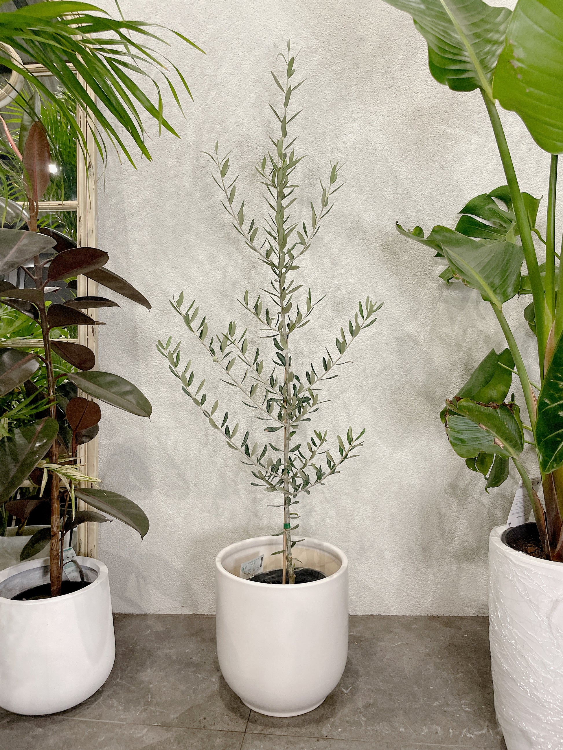 1.5m tall olive tree silver leaf plant ‘swan hill’ non fruiting home decor + 30cm white ceramic pot
