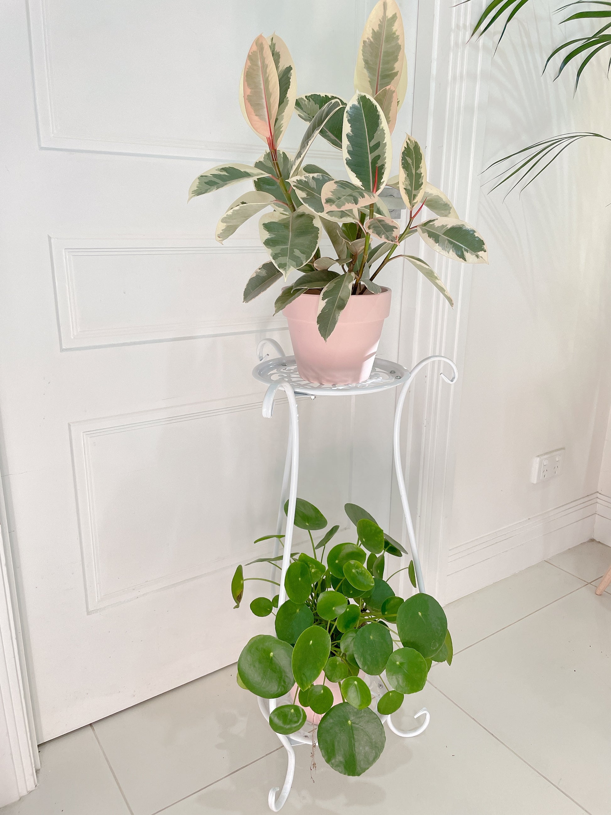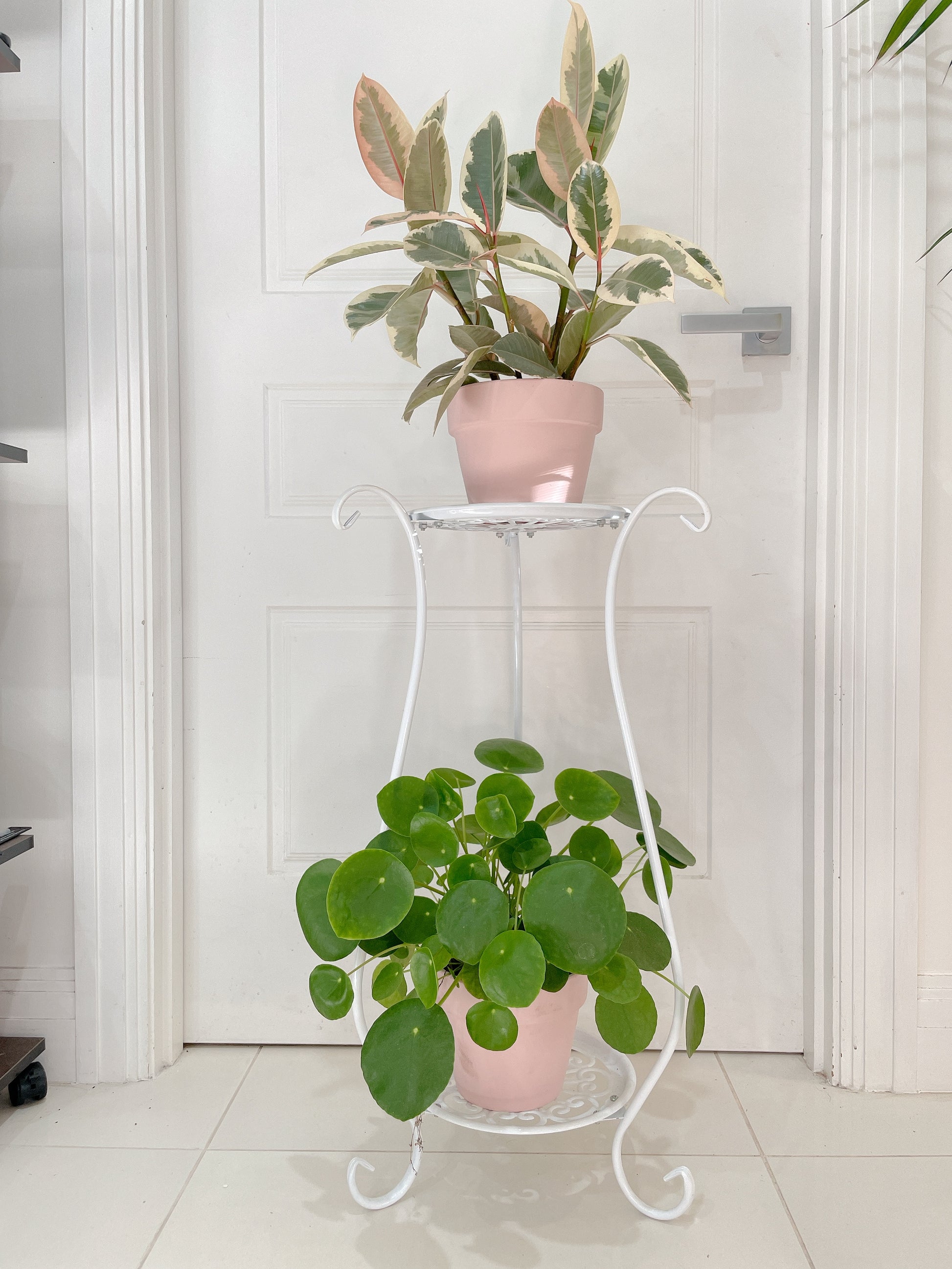 1x White STAND ONLY* PLANTS NOT INCLUDED 2tier stand planter holder lightweight metal BRAND NEW