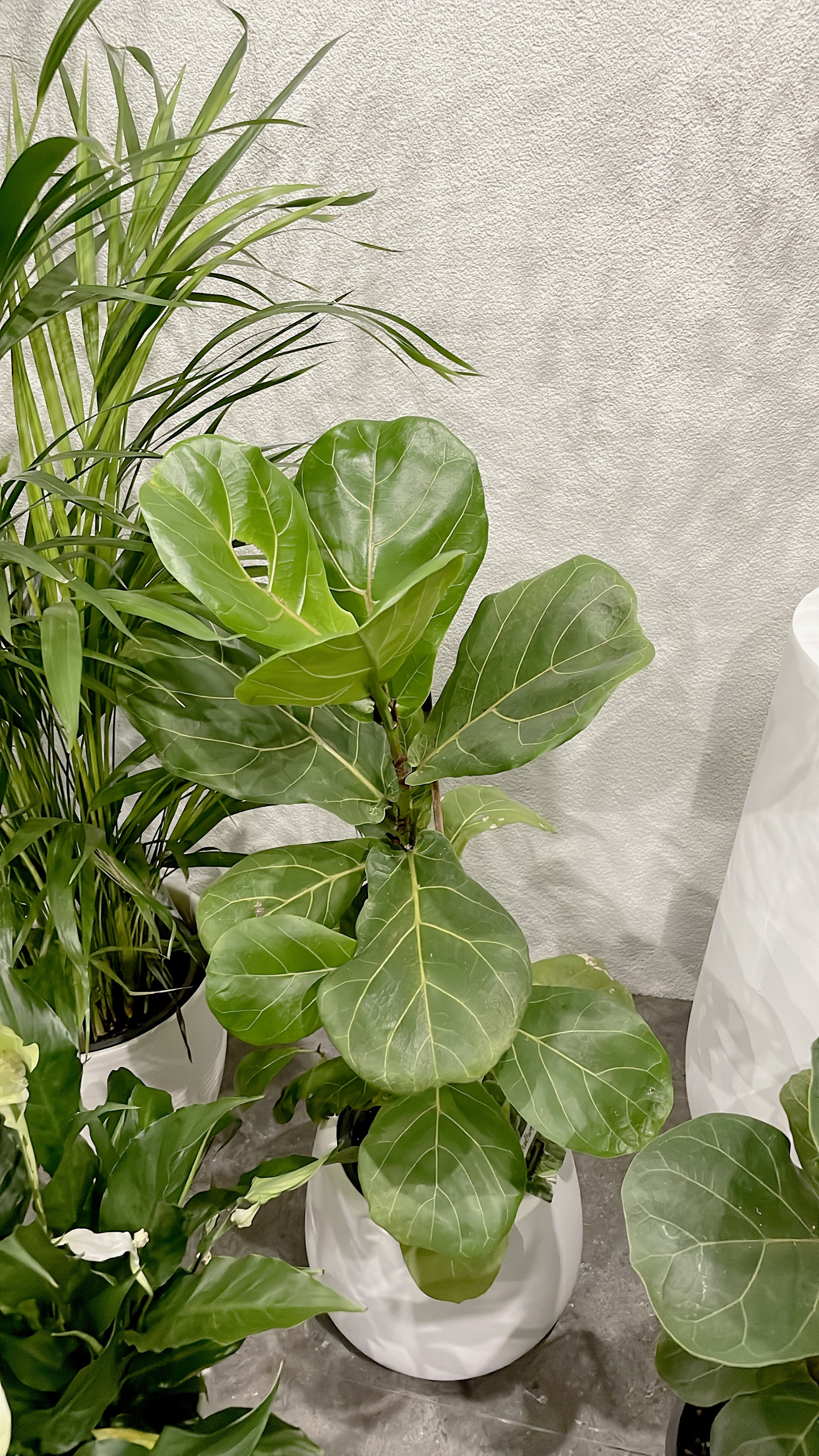 Clearance Bundle🪴easy care range golden cane palm+ficus fiddle leaf+flowering peace lily white ceramic pots