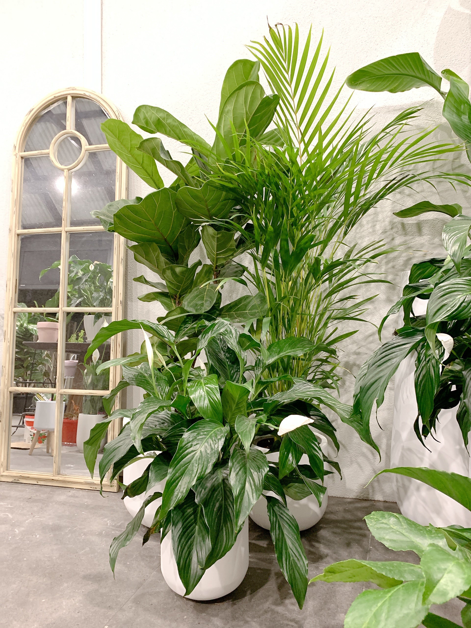 Giant bundle🪴1.3m ficus fiddle leaf golden cane palm flowering bushy peace lily+@37-30-25cm pot