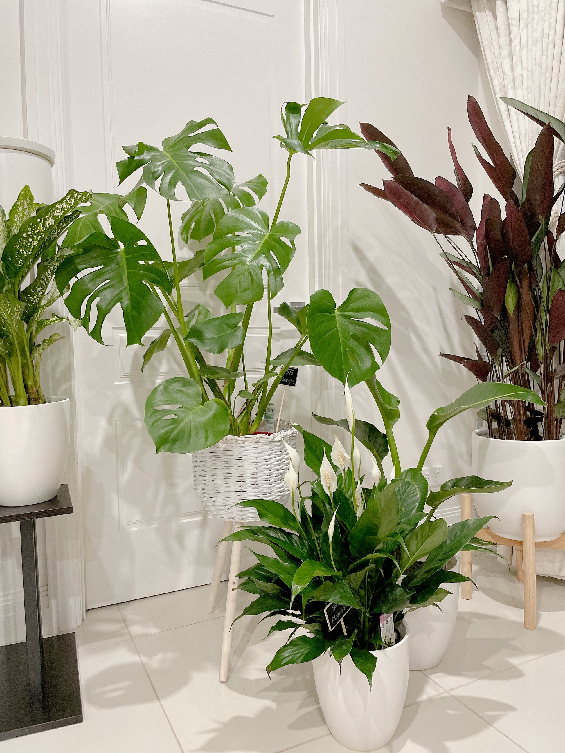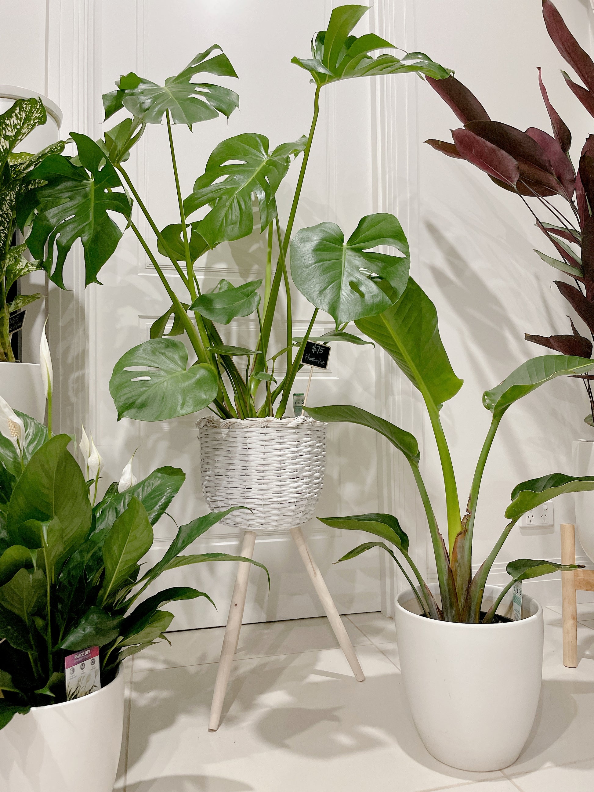 Huge monstera+rattan planter birds of paradise+flowering peace lily+ceramic pots can deliver