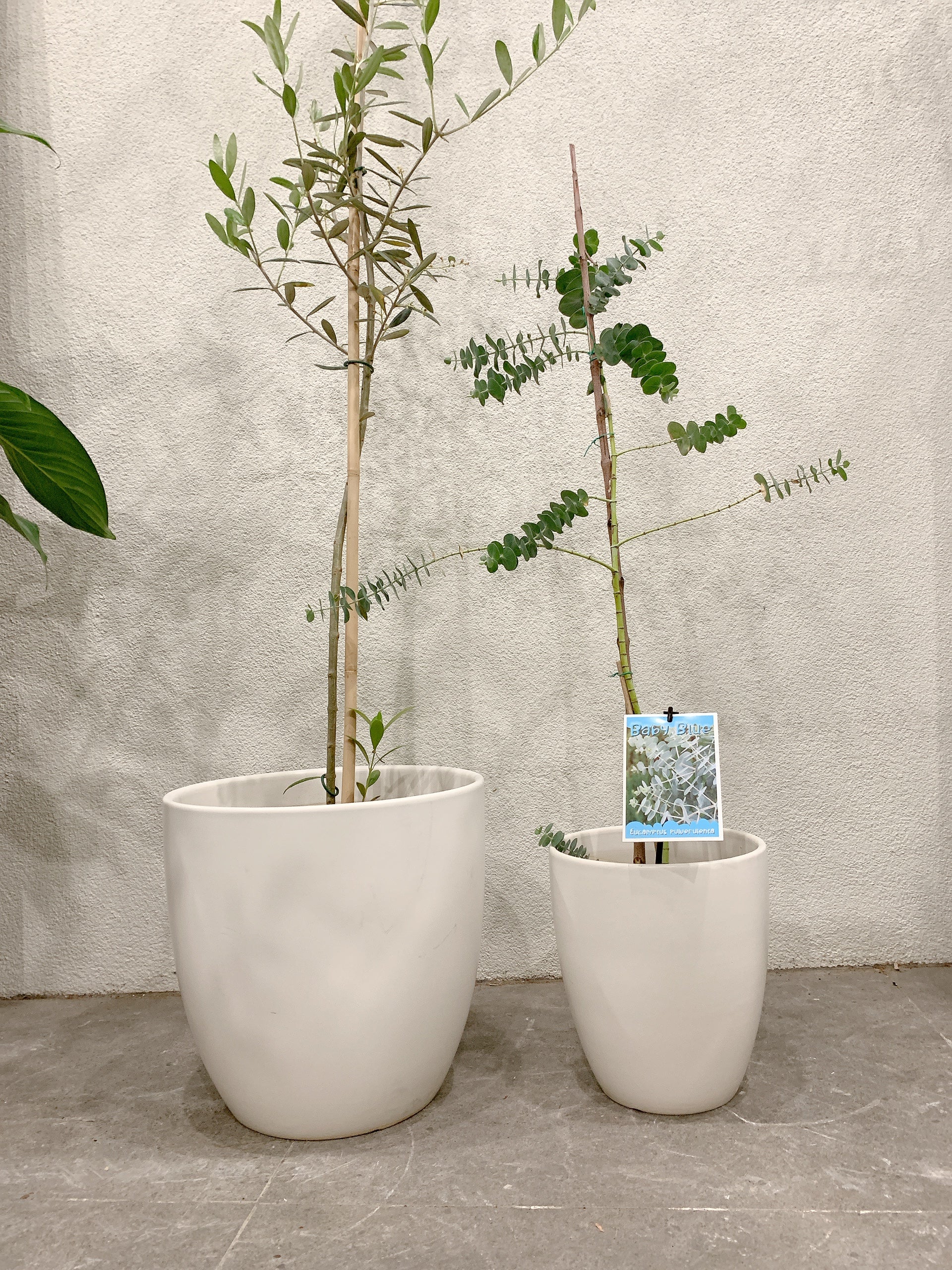 Outdoor bundle🪴1.7m tall Manzanillo olive plant tree+baby blue eucalyptus with @30-15cm white ceramic pots