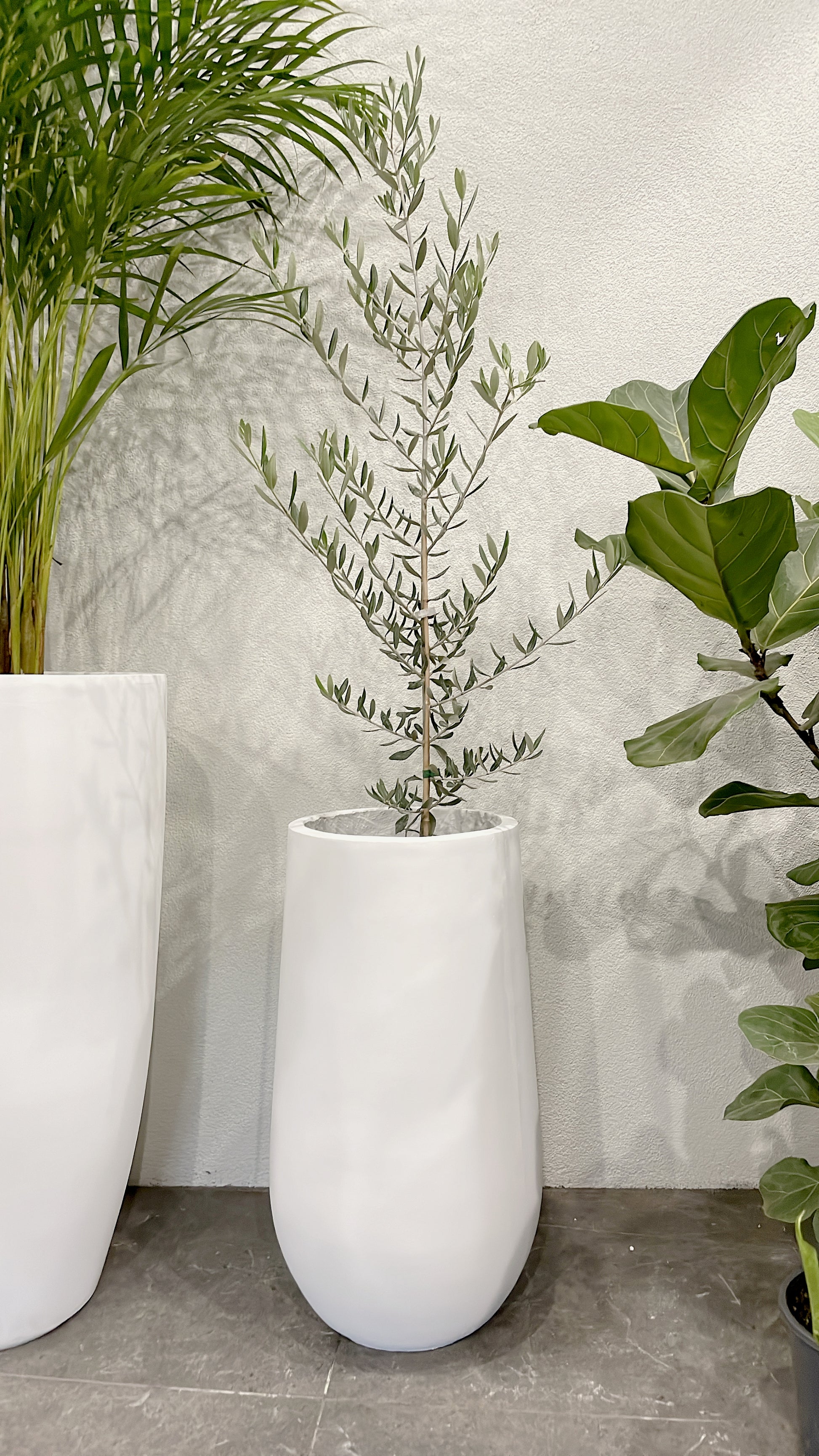 Silver olive tree ‘swan hill’ olea europaea indoor/outdoor plant with white fiberclay pot planter
